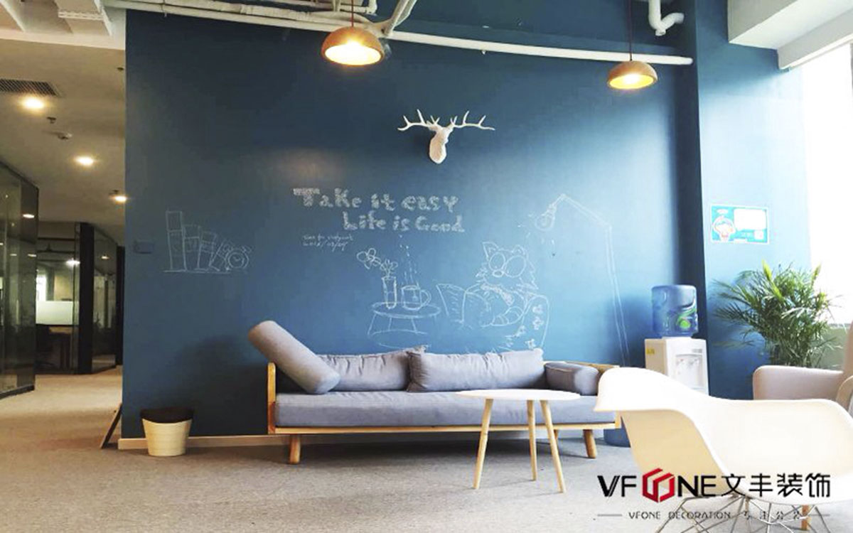 休閑洽談室是一個十分舒適的空間,墻壁上的各色的涂鴉也因辦公裝飾的變化而繪制,涂鴉與辦公空間合為一體,將這個空間賦予了輕松得氛圍。