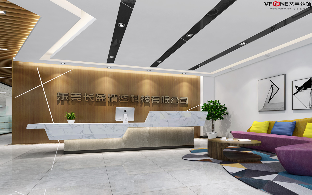 設計師考慮到總公司本身的地位和長盈自身的文化為設計的重點,打造重沉穩(wěn)的辦公室和廠房風格,以專業(yè)和大氣的辦公室接待客戶。大廳設計明亮大方,從頂面、墻面到地面鋪磚,色調(diào)統(tǒng)一,簡潔明了,凸顯專業(yè)的企業(yè)形象.。