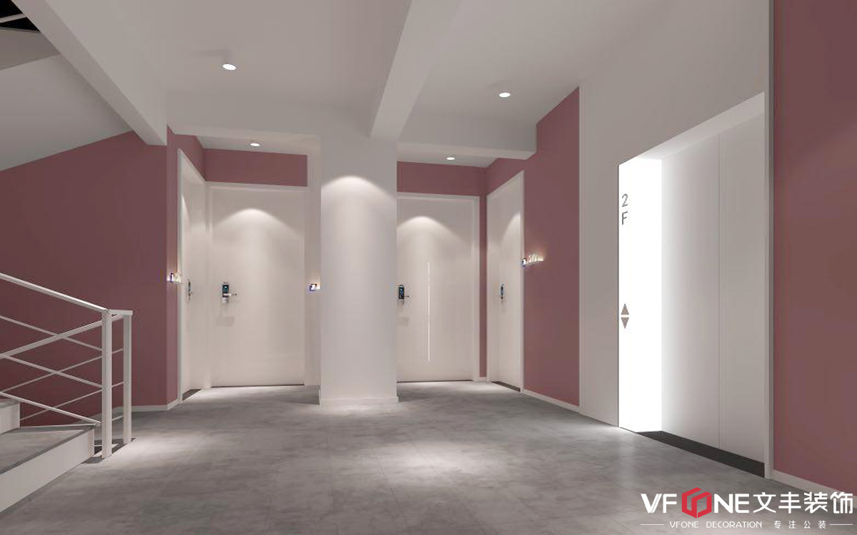 公寓的3樓以粉色為主色調(diào),整個(gè)空間都充滿(mǎn)了少女心,前臺(tái)背景墻的粉色和白色進(jìn)行搭配,天花上圓形吊燈為這個(gè)空間增加設(shè)計(jì)感。樓梯間的墻壁涂滿(mǎn)了粉色,粉色與白色的搭配是現(xiàn)代顏色重的浪漫色彩。