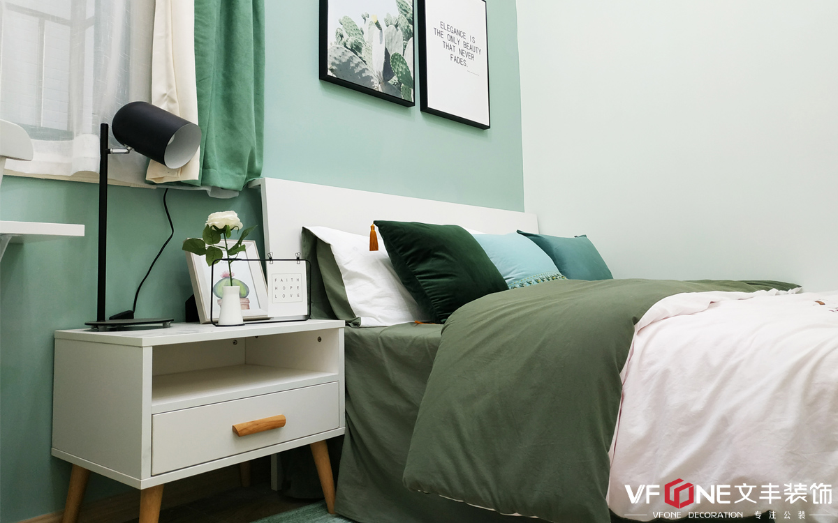 綠色為主色調(diào),淡漠綠中注入一抹清新淡雅的灰豆綠,帶來一個極簡的生活美境,透著一股清新活潑的氣息,讓人仿佛置身于治愈系的綠色森林之中。樹枝形吊燈、金屬質(zhì)感擺件、純白色家具等的使用,增添了空間的層次性和豐富感,讓居室更有藝術(shù)的氣息。 整個空間使用綠色的漸變色進行搭配,整個空間和諧且自然。搭配純色調(diào)、充滿生活氣息的家具,這個空間就是文藝人的天堂,打造一個健康自然的居家空間。