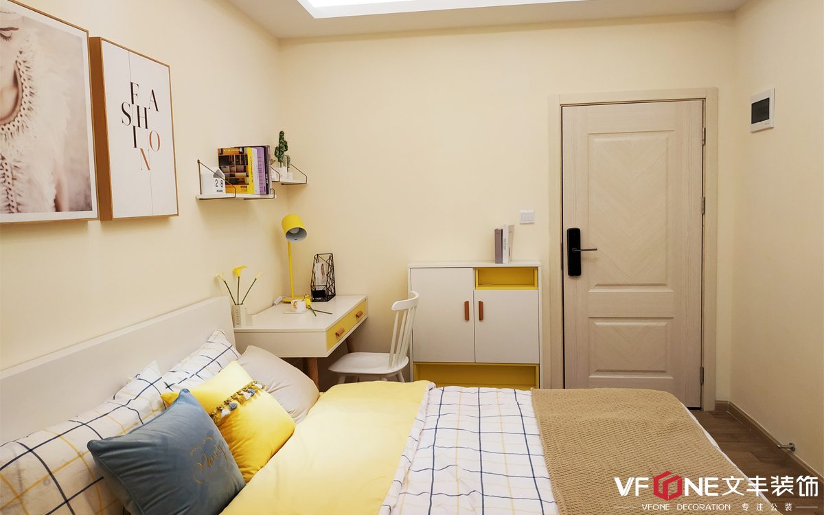 我們始終相信空間是有溫度的,繼而希望建立一套空間與內(nèi)里相關(guān)的“恒溫系統(tǒng)”,焦躁時家可以予你安寧,寂寞時家可以予你溫度。因而空間中采用燕麥色的主色彩基調(diào),簡潔質(zhì)樸,并加入少量鮮艷明亮的黃色進行調(diào)和,仿佛站在金黃色的田野之中,溫暖的陽光灑在身上,柔和而又溫馨。整體空間畫面平和自然,舒緩雅致,有一種靜態(tài)的和諧美。