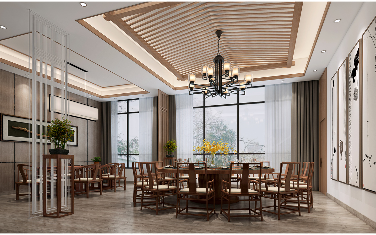 餐廳內(nèi)復(fù)古木質(zhì)桌椅環(huán)繞而立,古典的木作與時尚的裝飾相結(jié)合,掛畫墨香別具一格,別致的屏風(fēng)和燈籠造型的吊燈更是頗具古韻,整體設(shè)計典雅簡約,有一股幽深雅致之意,靜謐深遠(yuǎn)的意境也隨之而來。一杯清茶,靜聽一曲純音,在寂靜的時光中放下自己,畫骨清韻,飲盡冷暖。在這充滿禪意的空間,有無盡的人生回味。