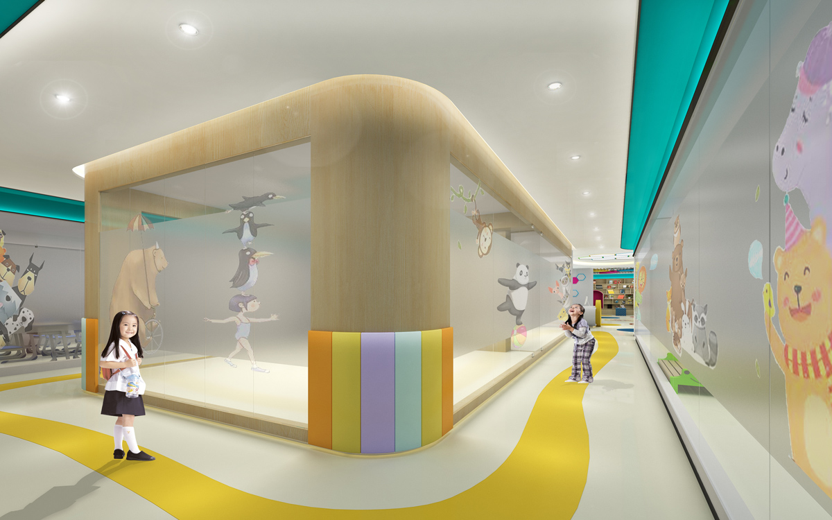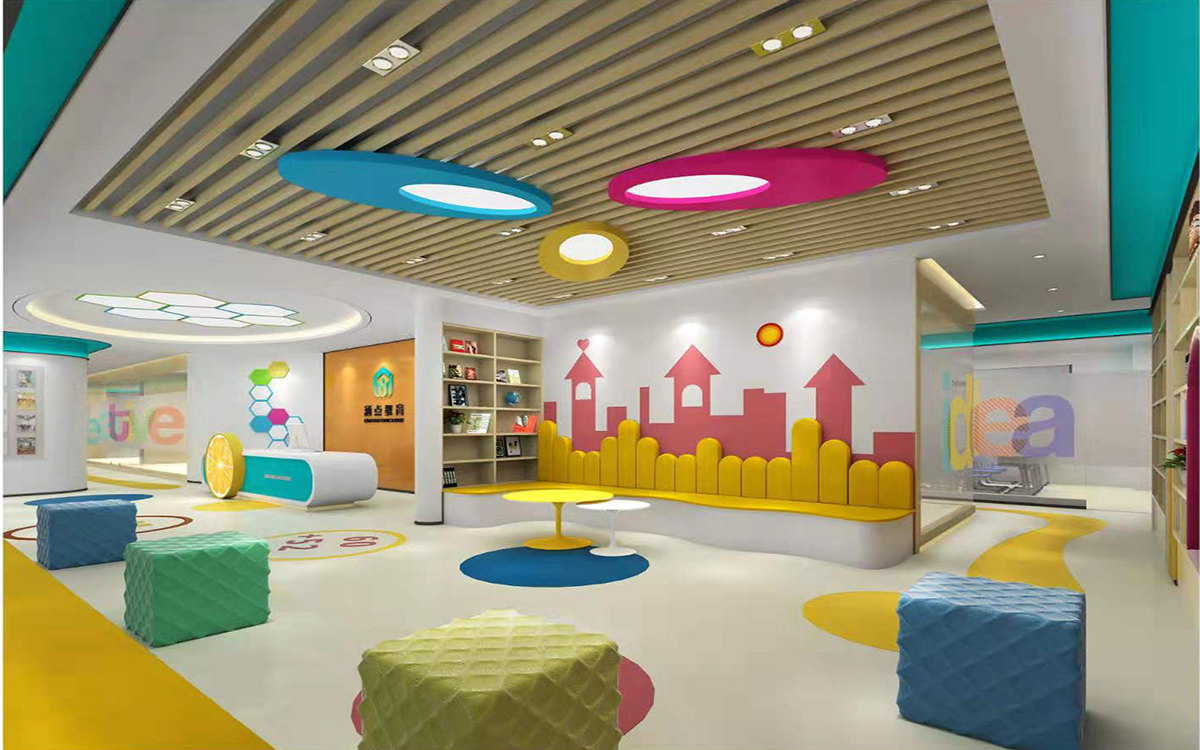 在色彩上,會采用鮮艷而溫柔的亮色,避免暗色調(diào)。孩子們往往對色彩鮮艷的東西或者事物感興趣。多元的顏色容易調(diào)動起孩子的積極性,迅速參與到課堂的授課和互動中來。過多艷麗的顏色容易分散孩子注意力,所以需要根據(jù)空間設(shè)計進行統(tǒng)一的色彩搭配。在地面設(shè)計上,除了符合幼兒活動場所的地面標準,還富具藝術(shù)性,滿足小朋友的審美要求。