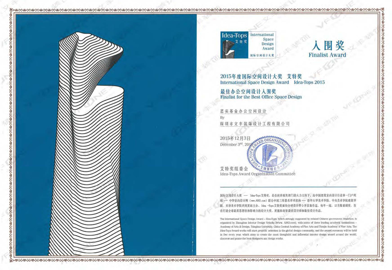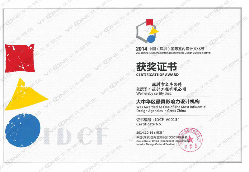 深圳辦公室裝修_大中華區(qū)最具影響力設(shè)計(jì)機(jī)構(gòu)獲獎證書 -