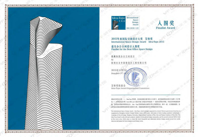 裝修甲級、國家高新技術(shù)企業(yè)、廣東省“守合同重信用”企業(yè)、大中華區(qū)最具影響力設(shè)計(jì)機(jī)構(gòu)、 IDCF 中國(深圳)國際設(shè)計(jì)年度影響力設(shè)計(jì)機(jī)構(gòu)