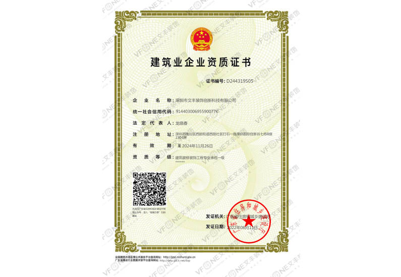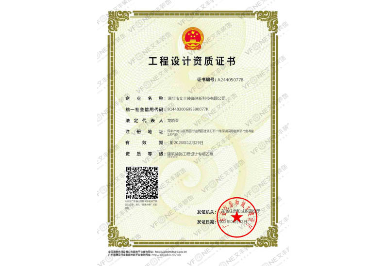 深圳裝修公司_工程設(shè)計(jì)資質(zhì)證書-文豐裝飾公司 -