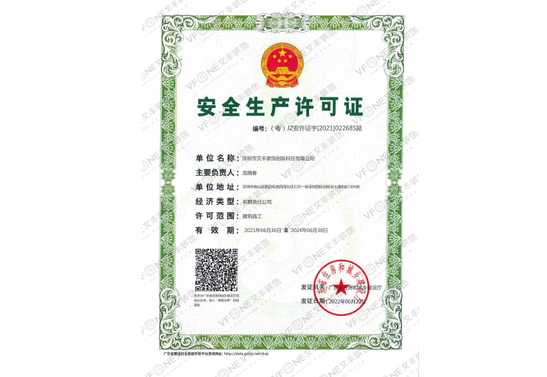 深圳裝修公司_安全生產(chǎn)許可證-文豐裝飾公司 -