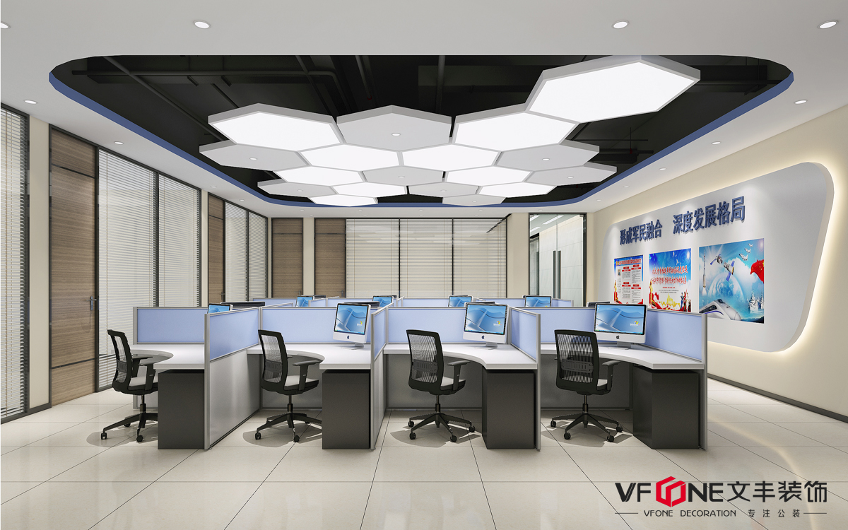 開放辦公區(qū)燈光設計以蜂巢的六邊形設計為原型,融合勤勞與自律、團隊與奉獻、明禮與誠信、實事與求實,彰顯企業(yè)服務在更廣范圍、更高層次、更深程度上的科技創(chuàng)新,為實現創(chuàng)新型服務的現代化改革提供豐厚的資源和可持續(xù)發(fā)展的后勁。