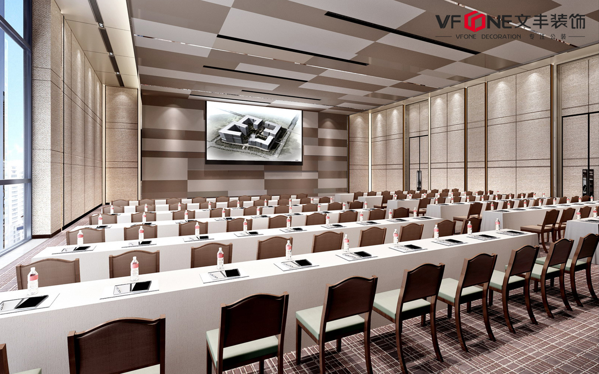 酒店的會議室是酒店的重點場所,會議室內(nèi)將桌椅按排端正擺放或成“ V ”型擺放,可針對會議室面積和觀眾人數(shù)在安排布置上具有一定的靈活性;參會者可以有放置資料及記筆記的桌子,還可以最大限度容納人數(shù);劇院式的會議場的裝潢多數(shù)為奢華莊嚴(yán)的風(fēng)格,適合大量人員參加,整體氛圍偏嚴(yán)謹(jǐn)。有舞臺設(shè)計,增強了現(xiàn)場的互動性,滿足一般高校的座談會、酒店、企業(yè)演講會議等要求;回型擺法的會議室,雖容納人數(shù)較少,但是隱私性較高,且隔音效果相對較好。