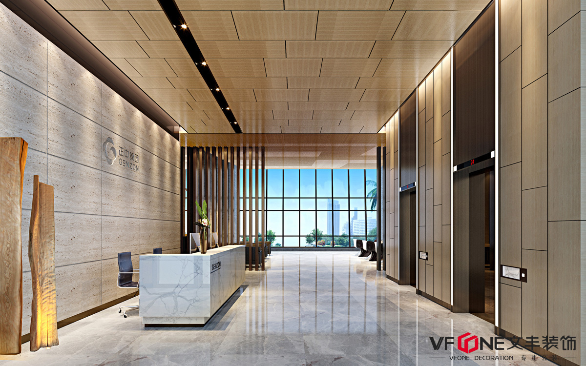 采用金屬包邊的矩形大理石前臺,簡約又大氣;設計上提煉了現(xiàn)代簡約風的靈動自然,營造出一個怡然舒適的辦公空間。玻璃幕墻和自然色大理石相間組合,整體簡潔大氣,在實現(xiàn)建筑內(nèi)部和外部之間體量感和氣質延續(xù)性的同時,不著痕跡地將外部環(huán)境、建筑體與室內(nèi)環(huán)境協(xié)調統(tǒng)一起來,將建筑美感延伸到室內(nèi),在感官體驗上使人更覺開闊明朗、沉穩(wěn)大氣。