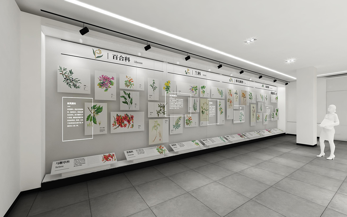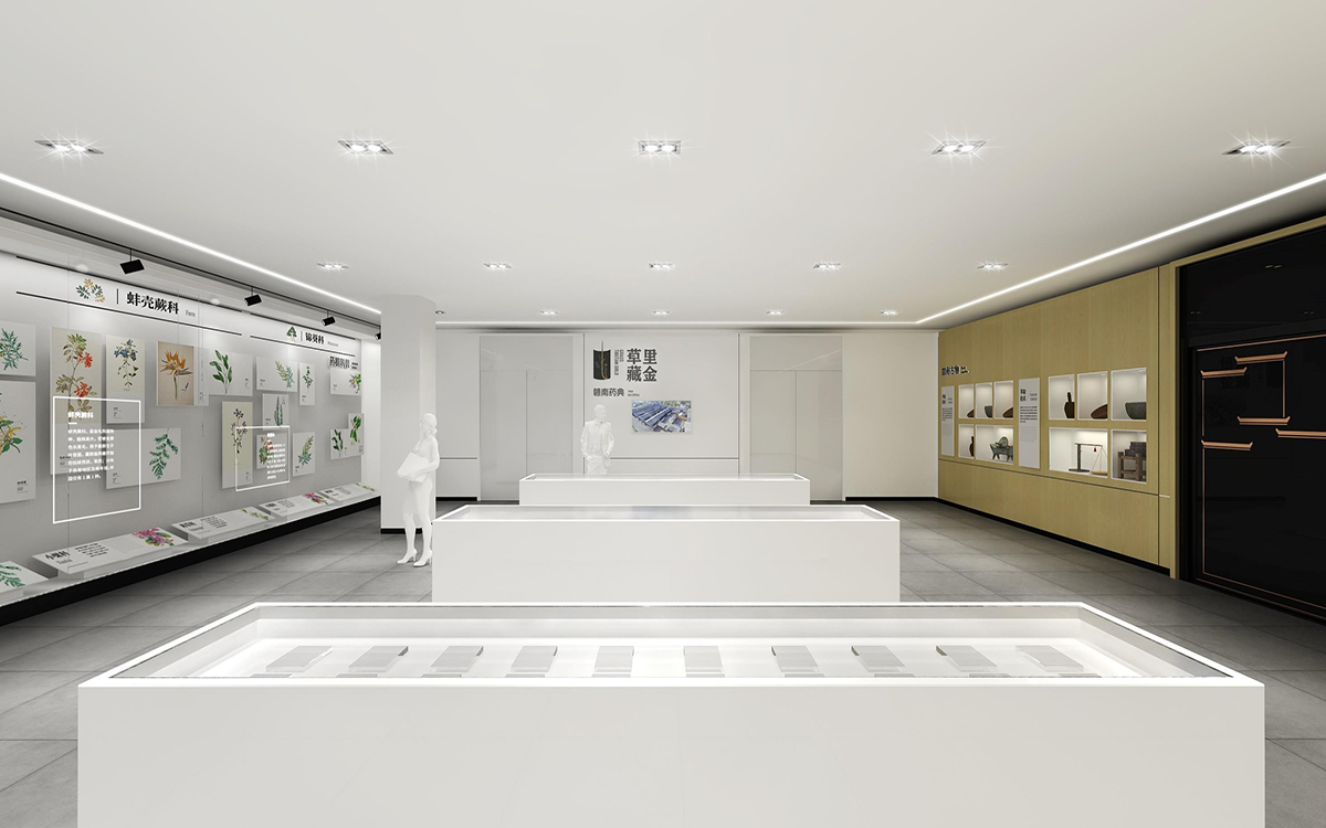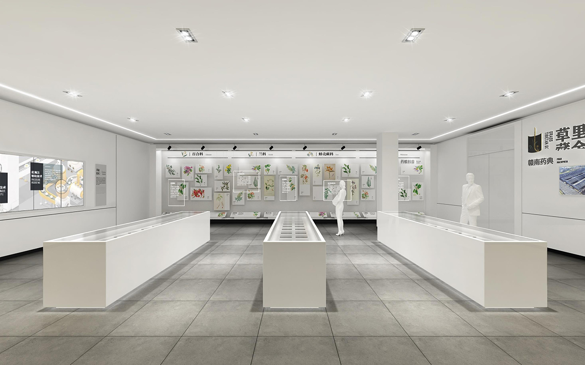 文豐裝飾的設(shè)計(jì)師從“天、地、人”這三個(gè)方面來設(shè)計(jì)和規(guī)劃贛南藥用植物應(yīng)用博物館,在展廳裝修設(shè)計(jì)中以“植物”為元素,整個(gè)展廳裝修設(shè)計(jì) 可以達(dá)到最大利用地展覽藥用植物,而設(shè)計(jì)元素則從“葉(植物)、瓦(文化)、光(科學(xué) )”來進(jìn)行提煉,綜合解決使用功能、視覺感受、經(jīng)濟(jì)效益、風(fēng)格特征等種種要求,以人為本,滿足把人對(duì)室內(nèi)環(huán)境的需求。整個(gè)區(qū)域分為六個(gè)主題:序廳、企業(yè)區(qū)、科普區(qū)、未來區(qū)、過渡期以及展銷中心。