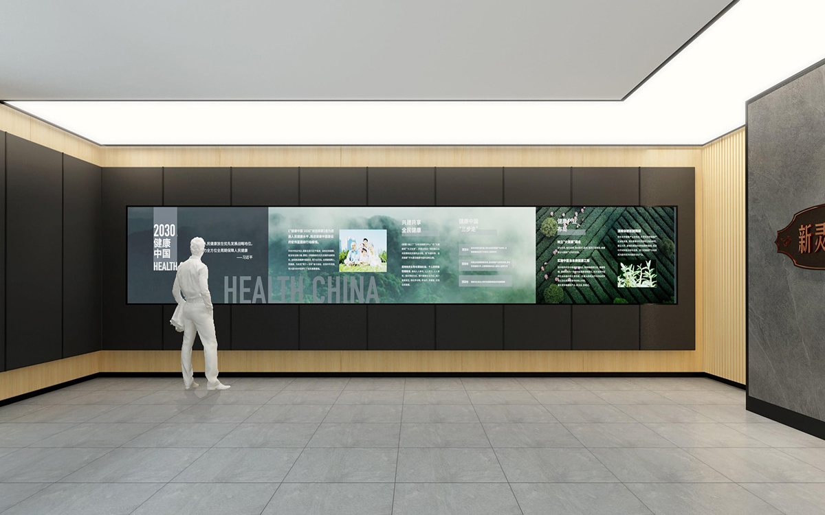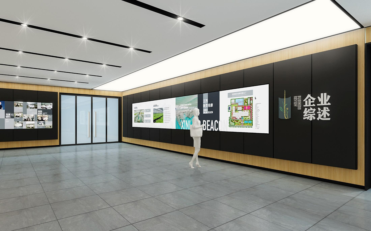 前臺(tái)背景墻采用水泥色的裝潢,讓整個(gè)空間有了一種工業(yè)感;背景上的電視墻播放著各種宣傳視頻,為整個(gè)空間增加真實(shí)感。一路向前,宣傳走廊上的講述著各種這個(gè)博物館的來源。播放間播放著各種藥用植物的來源,以視頻的方式讓觀賞者有更加立體的視覺體驗(yàn)。 這個(gè)空間是文豐裝飾對(duì)本博物館裝修設(shè)計(jì) 項(xiàng)目的 設(shè)計(jì)重點(diǎn)之一。